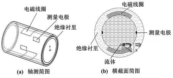 電容式一寸管污水流量計從根本上解決了電極表面附著、腐蝕、摩擦等問題,其電極與被測流體間有絕緣襯里隔離,或者直接采用絕緣測量管。電極置于測量管外面或鑲嵌于測量管內部。嵌人式一寸管污水流量計和外貼式一寸管污水流量計的結構如圖2所示。