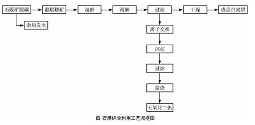 本項目為石煤綜合利用的項目。現(xiàn)有提釩工藝產(chǎn)生大量廢渣。其主要成分為二氧化硅,但其中夾帶有大量的釩資源,釩資源利用率低,同時,該廢渣中堿含量較高,如將廢渣隨意堆放,易造成環(huán)境污染。本項目*大特點在于利用現(xiàn)有提釩工藝中的提釩二次渣作為制備沉淀法白炭黑的主要原料,將廢渣中的硅資源得到充分利用。為企業(yè)創(chuàng)造了新的經(jīng)濟增長點,同時,解決了現(xiàn)有提釩生產(chǎn)中造成的釩資源浪費和環(huán)境污染問題,此外,該項目利用現(xiàn)有提釩生產(chǎn)線脫碳工序中產(chǎn)生的余熱作為加熱熱源,取代了傳統(tǒng)工藝以煙煤為主要燃料的方法,即對生產(chǎn)中產(chǎn)生的余熱得到了有效合理的利用,又進一步降低了產(chǎn)生的燃料成本,達到了節(jié)能減排,資源綜合利用的目的,工藝流程框圖如下。