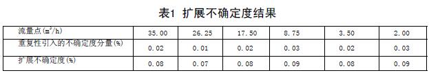 從表中已得出各測量點的Eri值。為此每個流量點由測量重復性引入的不確定度為:
