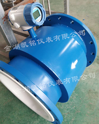 凱銘電磁流量計是以內襯絕緣材料做為非導磁合金短管;兩只電極沿管徑方向穿通壁固定在測量管上,其電極頭與襯里內表面基本齊平。勵磁線圈由雙向方波脈沖勱磁時,將在與測量管軸線垂直的方向上產生一磁通量密度為B的工作磁場;此時,如果具有一定電導率的液體流經測量管,將切割磁力線感應出電動勢E,電動勢E正比于磁通量密度B,測量管內徑d與平均流速V 的乘積。電動勢E(流量信號)由電極檢出并通過電纜送至轉換器。轉換器將流量信號放大處理后,可顯示流體流量,并能輸出脈沖,摸擬電流等信號,用于流量的控制和調節。
