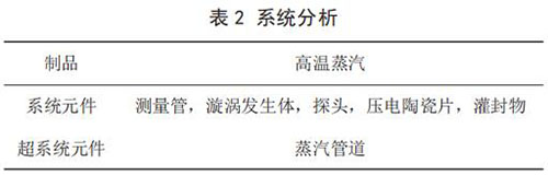 1)定義技術系統實現的功能。問題所在技術系統為二氧化硫流量計傳感器系統;該技術系統的功能為轉換信號;實現該功能的約束:測量精度為 ±1%,成本提高控制在 20% 之內。