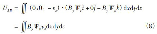 式中V為純水流量計傳感器測量空間;W→為權函數。在直角坐標系(x,y,z)中,式(5)可以轉換為