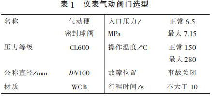 1) 空氣流量計(jì)出口管線總閥泄漏無法在線處理,導(dǎo)致氣化爐停車。在入氣化爐根部增加 2 臺儀表氣動閥門,要求每月進(jìn)行 2 次開、關(guān),防止閥門出現(xiàn)卡塞現(xiàn)象。 新增 2 臺儀表氣動閥門相關(guān)參數(shù)見表 1。