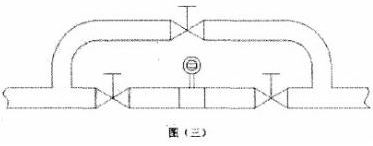 5.被測介質(zhì)是嚴(yán)重污濁液體過容易在管道結(jié)垢的液體,可以在安裝傳感器的測量管道上加一個旁通管,以便于拆卸清洗。如圖三所示。