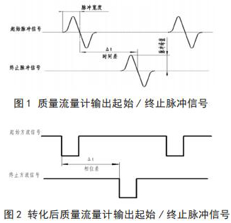 智能型電磁流量計流量與相關測試設備連接起來,就可以進行智能型電磁流量計的校準,時間差△ t 由專用試驗測試設備可以測出。起始脈沖信號和終止脈沖信號如圖 1 所示。經過專用試驗測試設備信號轉化后的信號方波如圖 2 所示。