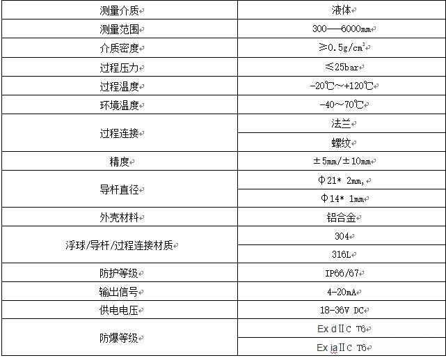 此外,根據液體的不同化學屬性,浮球、導桿和過程連接的材質可選用涂層(如PTFE、PP材質)、304不銹鋼和316L不銹鋼。其中,導桿直徑有φ21×2mm和φ14×1mm兩種尺寸可選。有關遠傳浮球液位計的具體參數,請詳見Float-11遠傳浮球液位計技術參數表。