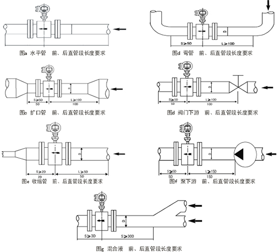 比較理想的安裝地點應選擇測量點前后有足夠的直管段。進口直管段應≥5D,出口直管段≥3D(D為傳感器公稱口徑)。