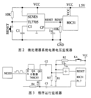 智能污水流量計采用程序運行監視系統以監視微處理器執行應用程序的狀況,當程序正彈到一個臨時構成的死循環中時看門狗能及時發并強迫系統復位,擺脫死循環狀態,圖3所示是由硬件和軟件配合構成的程序運行監視器。