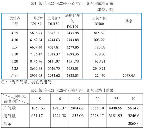 (1)綜上數據,圖表可看出煙氣流量計測量飽和蒸汽,流量數據顯示清晰,穩定可靠,其產、用氣量隨著流量計的完善,其差值變小了,也即使用部門越多,其消耗越少。