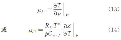 式中:T--絕對(熱力學(xué))溫度;p--流經(jīng)管道的流體靜壓;H--焓;RO--通用氣體常數(shù);Cm,p--定壓摩爾比熱容;Z--壓縮系數(shù)。