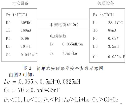 通過計算可知,本回路的安全參數均滿足不等式(1) ~ (5) ,因此本回路能通過本安回路計算,可以直接用于防爆區。